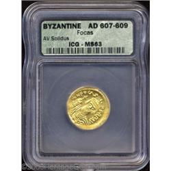 <TABLE cellSpacing=0 cellPadding=0 width="100%" bgColor=#000000 border=0><TBODY> <TR><TD width="100%"><TABLE cellSpacing=1 cellPadding=3 width="100%" border=0><TBODY><TR><TD width="100%" bgColor=#79735c><FONT face=arial color=#ffffff size=3><B>Description</B> </FONT></TD></TR><TR><TD width="100%" bgColor=#ffffff><FONT face=arial size=2><B>Phocas.</B></I> A.D. 602-610. AV solidus (20 mm). Constantinople, A.D. 607-610. Crowned and draped bust facing, holding globus cruciger / Angel standing facing, holding long staff surmounted by a Christogram in right hand, globus cruciger in left; E/CONOB. DOC 10e; SB 620. MS63 ICG. </FONT></TD></TR></TBODY></TABLE></TD></TR></TBODY></TABLE><BR><A name=PricesRealized></A><TABLE cellSpacing=0 cellPadding=0 width="100%" bgColor=#000000 border=0><TBODY><TR><TD width="100%"><TABLE cellSpacing=1 cellPadding=3 width="100%" border=0><TBODY><TR><TD width="100%" bgColor=#79735c><A name=PR><FONT face=arial color=#ffffff size=3><B>Previous Prices from Heritage Auctions</B> </FONT></A></TD></TR><TR><TD bgColor=#f6f6ed>No Prior Data Recorded </TD></TR><TR><TD bgColor=#ffffff><FONT face=arial size=1 ?>PLEASE NOTE: All prices realized reflect the final hammer price PLUS the buyer's premium in auctions that charge a buyer's premium. Each item has a notation at the top of the listing indicating whether that lot included a buyer's premium. Example: A item that sells with a final hammer price of $100 and a 20% buyer's premium will display with a price realized of $120. All information listed is intended to be as accurate as possible, but errors are possible. Please use this guide carefully and inform us of any inaccuracies. </FONT></TD></TR></TBODY></TABLE></TD></TR></TBODY></TABLE><BR><TABLE cellSpacing=0 cellPadding=0 width="100%" bgColor=#000000 border=0><TBODY><TR><TD width="100%"><TABLE cellSpacing=1 cellPadding=3 width="100%" border=0><TBODY><TR><TD width="100%" bgColor=#79735c colSpan=6><FONT face=arial color=#ffffff size=3><B>Price Guide*</B> </FONT></TD></TR><TR bgColor=#f6f6ed><TD align=middle><B>Grade</B> </TD><TD align=middle><B>Coin World<BR>(Trends)</B> </TD><TD align=middle><B>Numismedia<BR>Retail</B> </TD><TD align=middle><B>Numismedia<BR>Wholesale</B> </TD><TD align=middle><B>Coin<BR>Universe</B> </TD><TD align=middle><B>Heritage<BR>Value Index</B> </TD></TR><TR bgColor=#ffffff><TD colSpan=6><FONT size=1>*All information listed is intended to be as accurate as possible, but errors are possible. No item may be returned or refused based on this information which is provided as a service to our customers. You should contact each pricing source directly to determine the accuracy of this information. </FONT></TD></TR></TBODY></TABLE></TD></TR></TBODY></TABLE><BR><TABLE cellSpacing=0 cellPadding=0 width="100%" bgColor=#000000 border=0><TBODY><TR><TD width="100%"><TABLE cellSpacing=1 cellPadding=3 width="100%" border=0><TBODY><TR><TD width="100%" bgColor=#79735c><FONT face=arial color=#ffffff size=3><B>Population Guide</B> </FONT></TD></TR><TR bgColor=#ffffff> Important notice: Heritage usually auctions material at the rate of 200-250 lots per hour. On some occasions eBay Live bid software or the Internet may not be able to keep up with the pace of the auction. We recommend placing a realistic absentee bid now as insurance to avoid disappointment. Occasionally the auctioneer may eliminate or reject an eBay Live bid, and the auctioneer may also reopen a lot after the close of the eBay live bidding (usually because we missed an audience bid), and may reject your bid even if it shows you as the winning bidder. By bidding via eBay Live, you agree that Heritage may award the lot to another bidder at its sole discretion under the circumstances described above or any other reasonable circumstances. Also please note that all Heritage lots purchased through eBay Live carry a 20% Buyer's Premium. Please make sure you read the Terms and Conditions before you bid.</TD></TR></TBODY></TABLE></TD></TR></TBODY></TABLE>