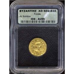 <TABLE cellSpacing=0 cellPadding=0 width="100%" bgColor=#000000 border=0><TBODY> <TR><TD width="100%"><TABLE cellSpacing=1 cellPadding=3 width="100%" border=0><TBODY><TR><TD width="100%" bgColor=#79735c><FONT face=arial color=#ffffff size=3><B>Description</B> </FONT></TD></TR><TR><TD width="100%" bgColor=#ffffff><FONT face=arial size=2><B>Phocas.</B></I> A.D. 602-610. AV solidus (21 mm). Constantinople, A.D. 607-610. Crowned and draped bust facing, holding globus cruciger / Angel standing facing, holding long staff surmounted by a Christogram in right hand, globus cruciger in left; (Theta)/CONOB. DOC 10i; SB 620. AU55 ICG. </FONT></TD></TR></TBODY></TABLE></TD></TR></TBODY></TABLE><BR><A name=PricesRealized></A><TABLE cellSpacing=0 cellPadding=0 width="100%" bgColor=#000000 border=0><TBODY><TR><TD width="100%"><TABLE cellSpacing=1 cellPadding=3 width="100%" border=0><TBODY><TR><TD width="100%" bgColor=#79735c><A name=PR><FONT face=arial color=#ffffff size=3><B>Previous Prices from Heritage Auctions</B> </FONT></A></TD></TR><TR><TD bgColor=#f6f6ed>No Prior Data Recorded </TD></TR><TR><TD bgColor=#ffffff><FONT face=arial size=1 ?>PLEASE NOTE: All prices realized reflect the final hammer price PLUS the buyer's premium in auctions that charge a buyer's premium. Each item has a notation at the top of the listing indicating whether that lot included a buyer's premium. Example: A item that sells with a final hammer price of $100 and a 20% buyer's premium will display with a price realized of $120. All information listed is intended to be as accurate as possible, but errors are possible. Please use this guide carefully and inform us of any inaccuracies. </FONT></TD></TR></TBODY></TABLE></TD></TR></TBODY></TABLE><BR><TABLE cellSpacing=0 cellPadding=0 width="100%" bgColor=#000000 border=0><TBODY><TR><TD width="100%"><TABLE cellSpacing=1 cellPadding=3 width="100%" border=0><TBODY><TR><TD width="100%" bgColor=#79735c colSpan=6><FONT face=arial color=#ffffff size=3><B>Price Guide*</B> </FONT></TD></TR><TR bgColor=#f6f6ed><TD align=middle><B>Grade</B> </TD><TD align=middle><B>Coin World<BR>(Trends)</B> </TD><TD align=middle><B>Numismedia<BR>Retail</B> </TD><TD align=middle><B>Numismedia<BR>Wholesale</B> </TD><TD align=middle><B>Coin<BR>Universe</B> </TD><TD align=middle><B>Heritage<BR>Value Index</B> </TD></TR><TR bgColor=#ffffff><TD colSpan=6><FONT size=1>*All information listed is intended to be as accurate as possible, but errors are possible. No item may be returned or refused based on this information which is provided as a service to our customers. You should contact each pricing source directly to determine the accuracy of this information. </FONT></TD></TR></TBODY></TABLE></TD></TR></TBODY></TABLE><BR><TABLE cellSpacing=0 cellPadding=0 width="100%" bgColor=#000000 border=0><TBODY><TR><TD width="100%"><TABLE cellSpacing=1 cellPadding=3 width="100%" border=0><TBODY><TR><TD width="100%" bgColor=#79735c><FONT face=arial color=#ffffff size=3><B>Population Guide</B> </FONT></TD></TR><TR bgColor=#ffffff> Important notice: Heritage usually auctions material at the rate of 200-250 lots per hour. On some occasions eBay Live bid software or the Internet may not be able to keep up with the pace of the auction. We recommend placing a realistic absentee bid now as insurance to avoid disappointment. Occasionally the auctioneer may eliminate or reject an eBay Live bid, and the auctioneer may also reopen a lot after the close of the eBay live bidding (usually because we missed an audience bid), and may reject your bid even if it shows you as the winning bidder. By bidding via eBay Live, you agree that Heritage may award the lot to another bidder at its sole discretion under the circumstances described above or any other reasonable circumstances. Also please note that all Heritage lots purchased through eBay Live carry a 20% Buyer's Premium. Please make sure you read the Terms and Conditions before you bid.</TD></TR></TBODY></TABLE></TD></TR></TBODY></TABLE>