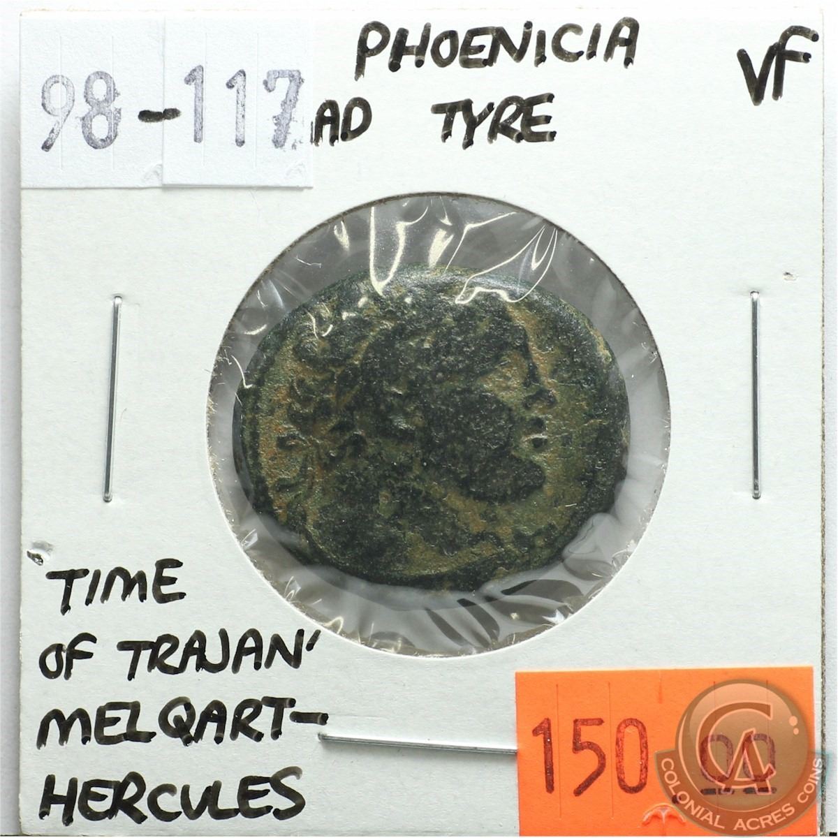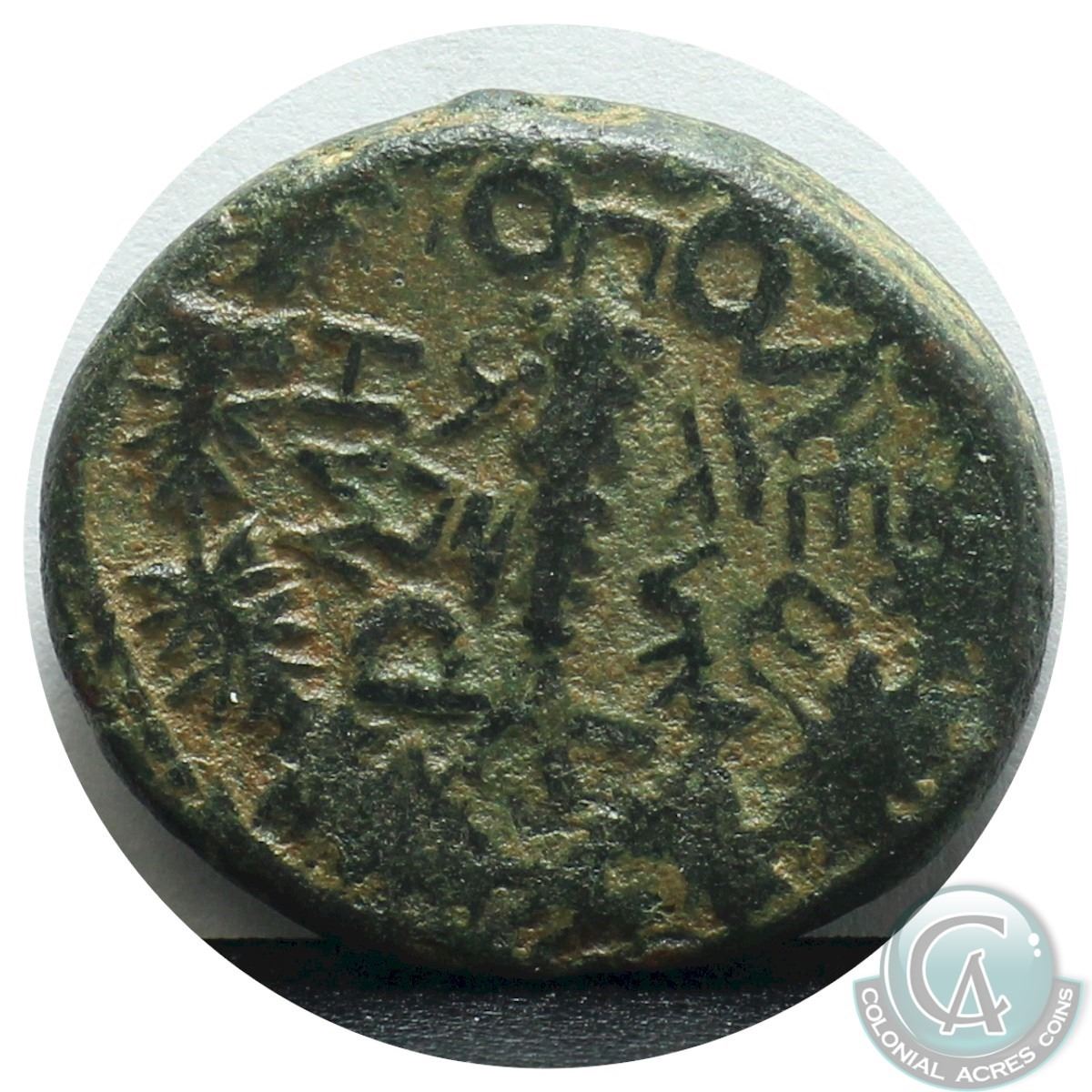 Phoenicia Tyre 98-117 AD; Melqart-Hercules; 'Time of Trajan'; VF; Reverse - 'Club Upright, with Civic Monogram at Handle. AMS (Date). Phoenician Legend in Field'