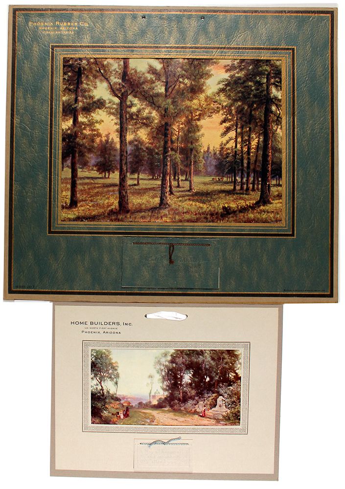 Lot of 2. 1) Home Builders, Inc 124 North First Ave calendar for January 1923. It measures 12" x 9.25" and has little wear. 2) Phoenix Rubber Co. for January 1928. It measures 17" x 15.5" and has little wear. Bud Bassett Collection - HKA#65550