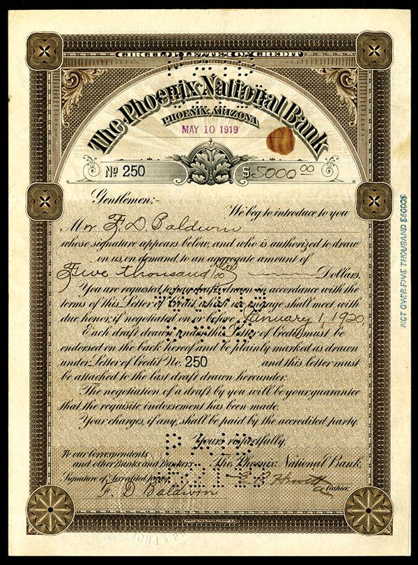 Arizona. 1919. $5000 I/C Bond. #250. Black print with brown border and underprint no vignette. Fine condition. RBNC.