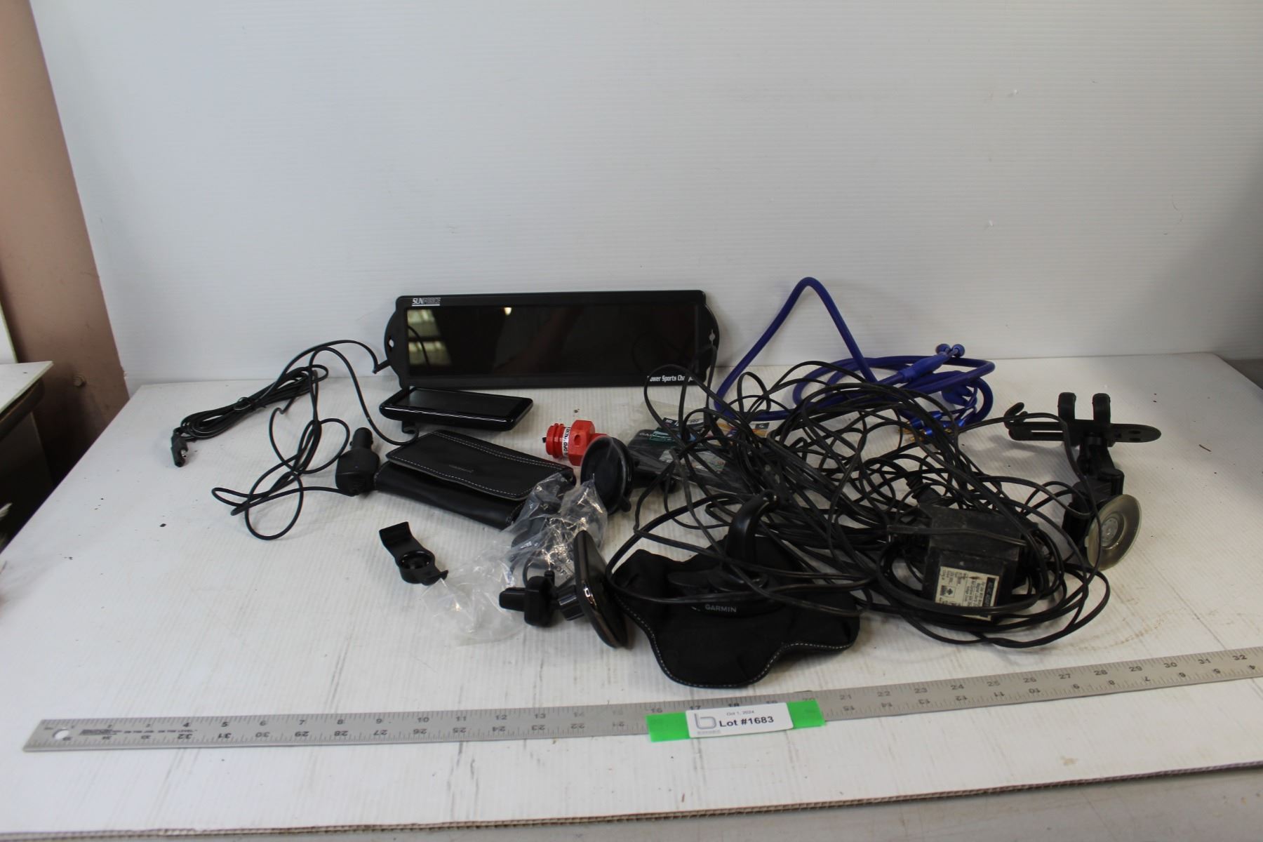 Phone Mounts, Review Mirror Dash Camera, Power Sports Charger, Assorted Cords