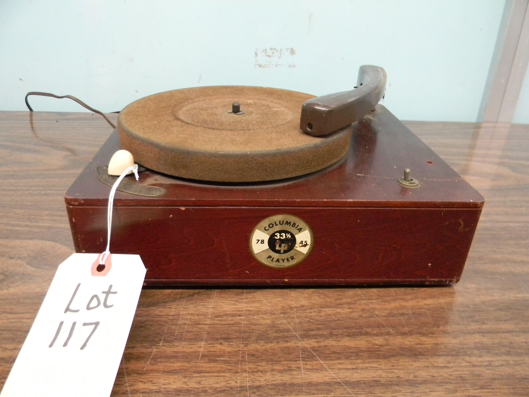 Columbia 3-Speed turntable; wood cabinet, nice condition, motor works