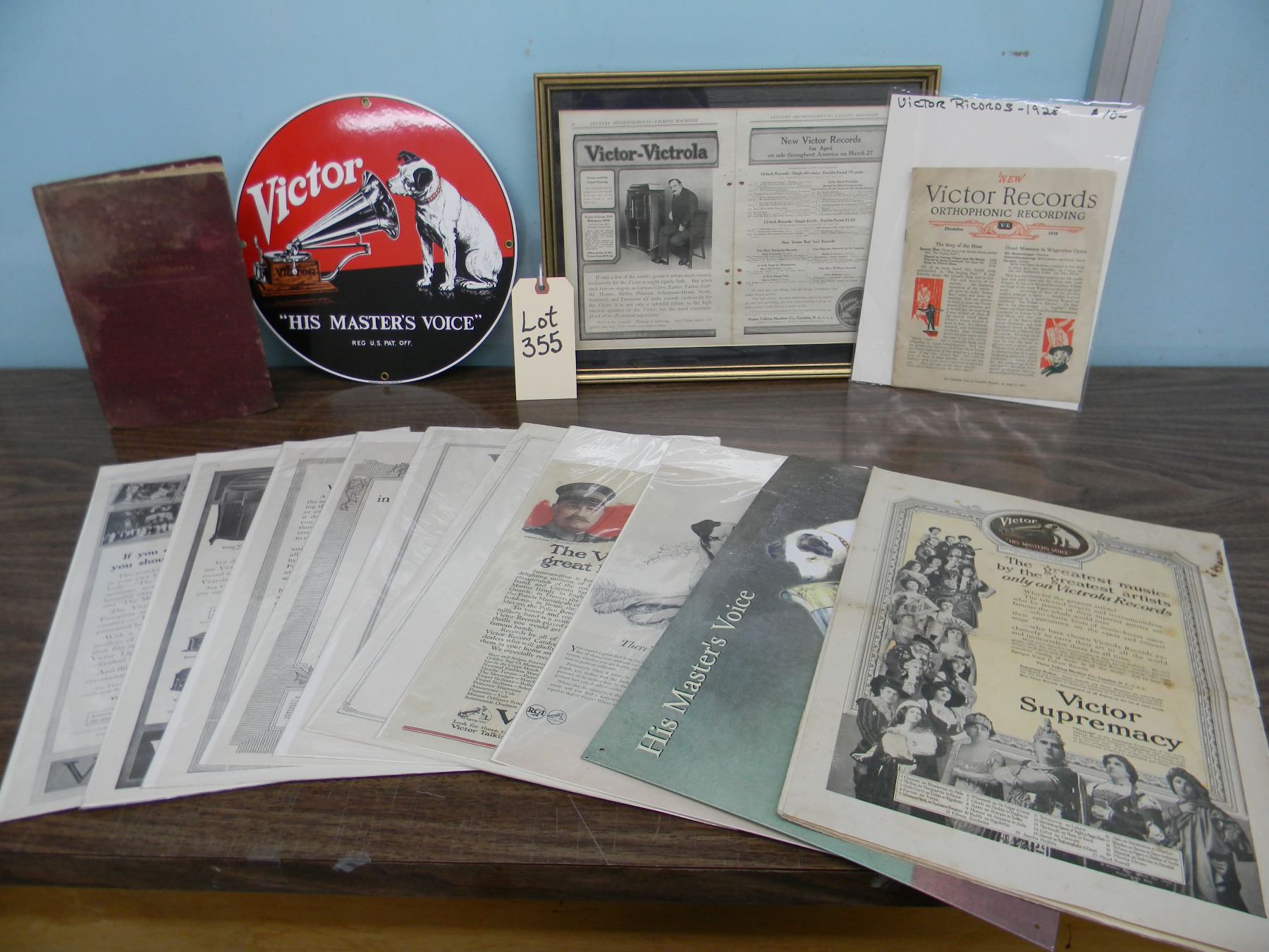 Flat of Victor phono advertising and a 1907 book, "How to Sell Victors on Installment "; book - Index of Victor Records - never used