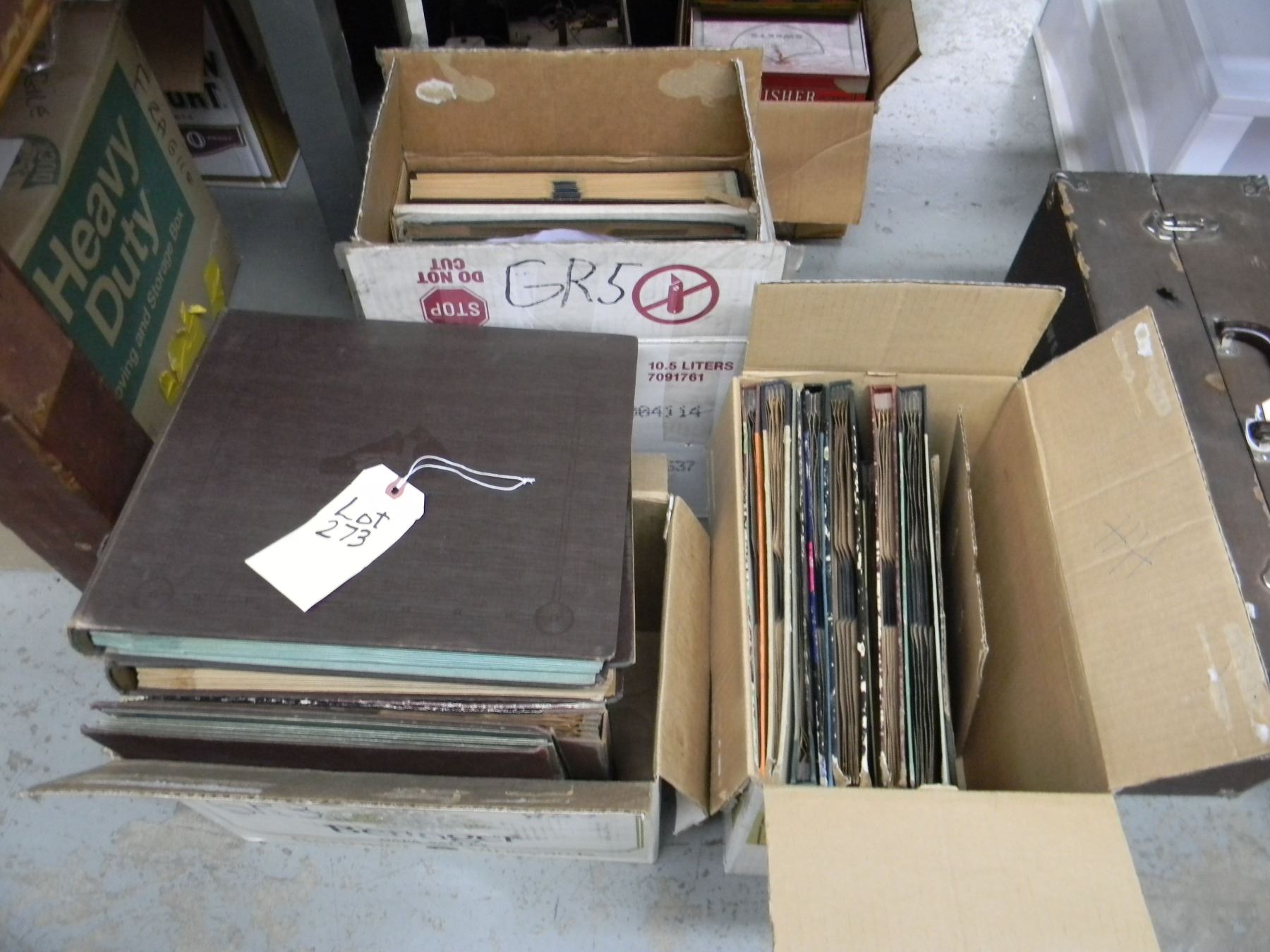 Three boxes of 78 rpm records in albums