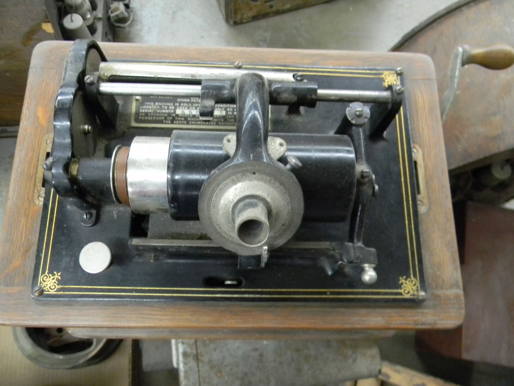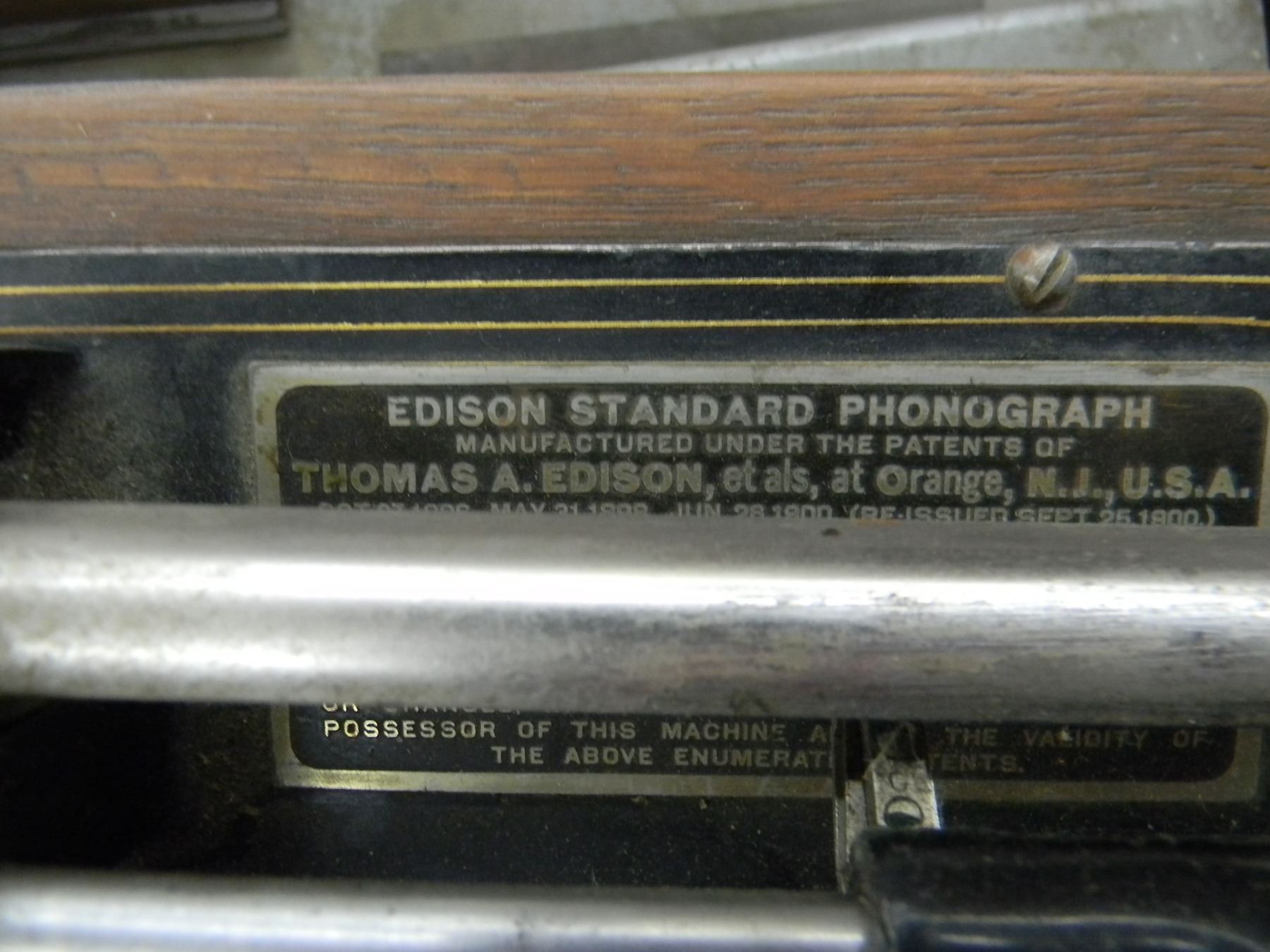 Edison Standard cylinder phonograph, no horn, trim molding on lid needs gluing; motor works