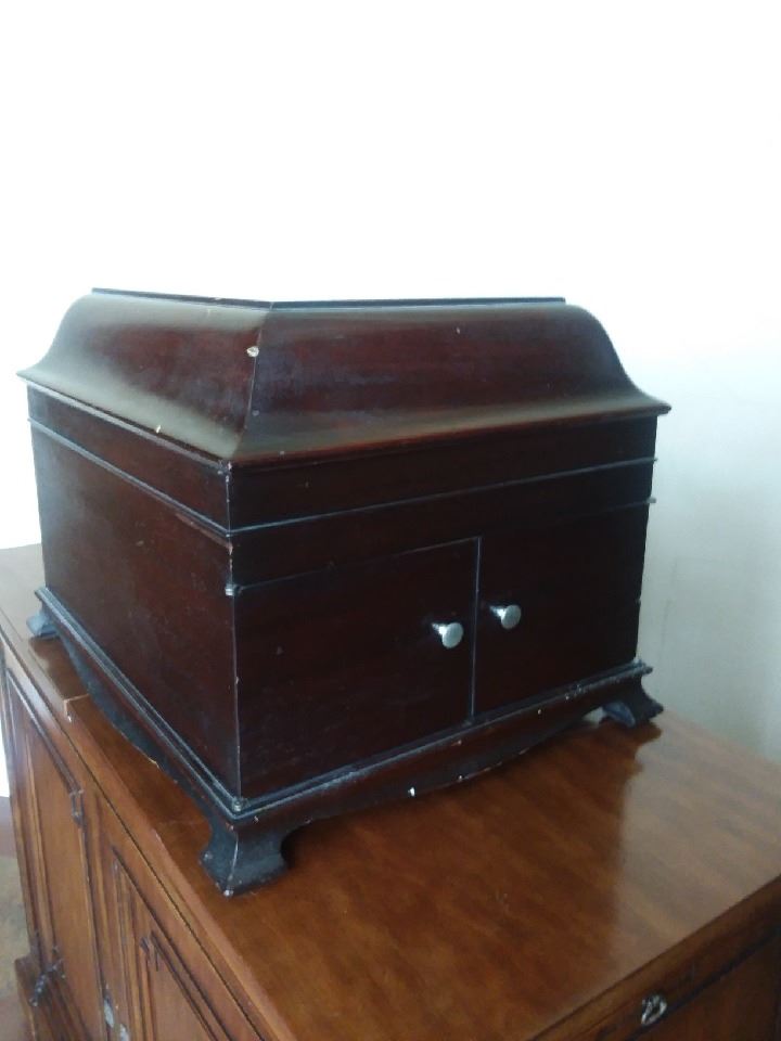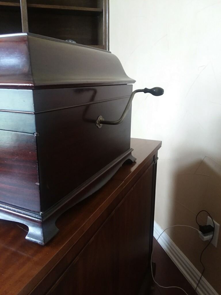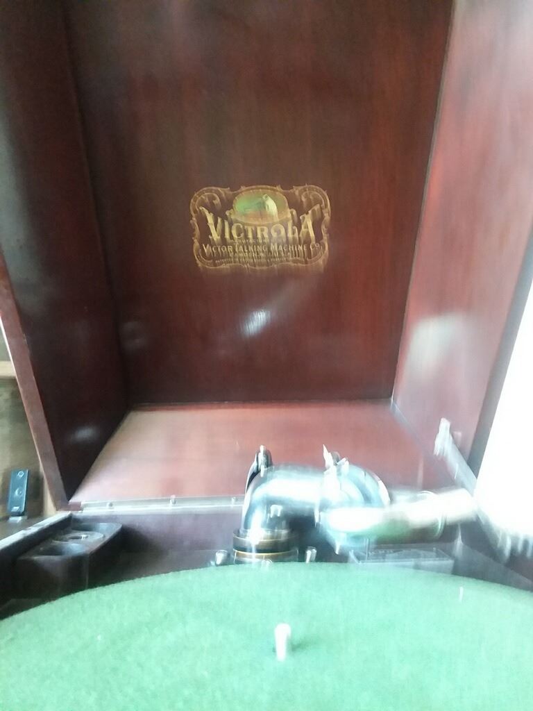 Victor Victrola model VV-IX. Nice table top inside horn phono. This phonograph is in excellent original condition. It plays top notch with really nice/loud sound. Complete with dust cover, books and needle tin to hold spare steel needles.