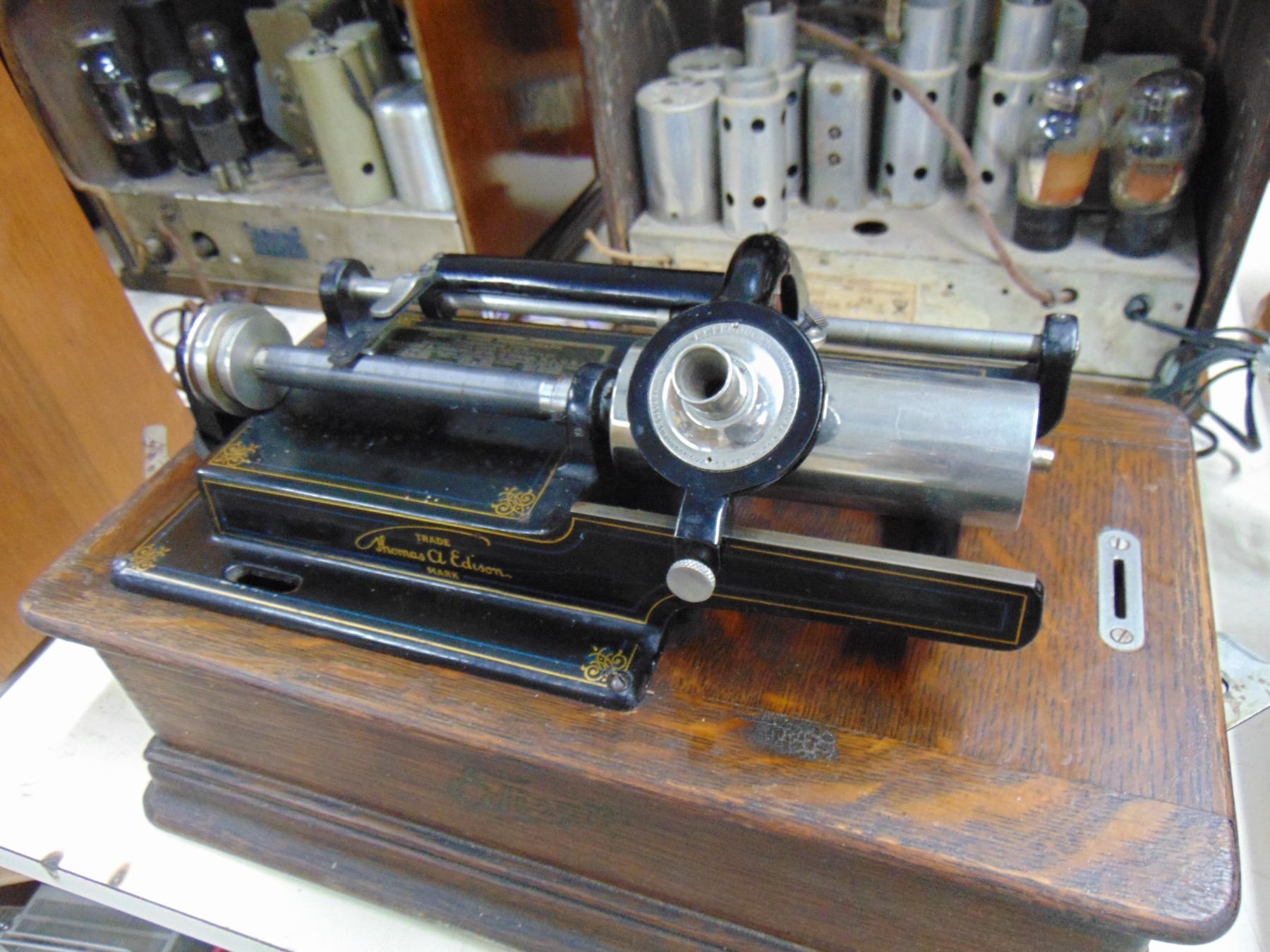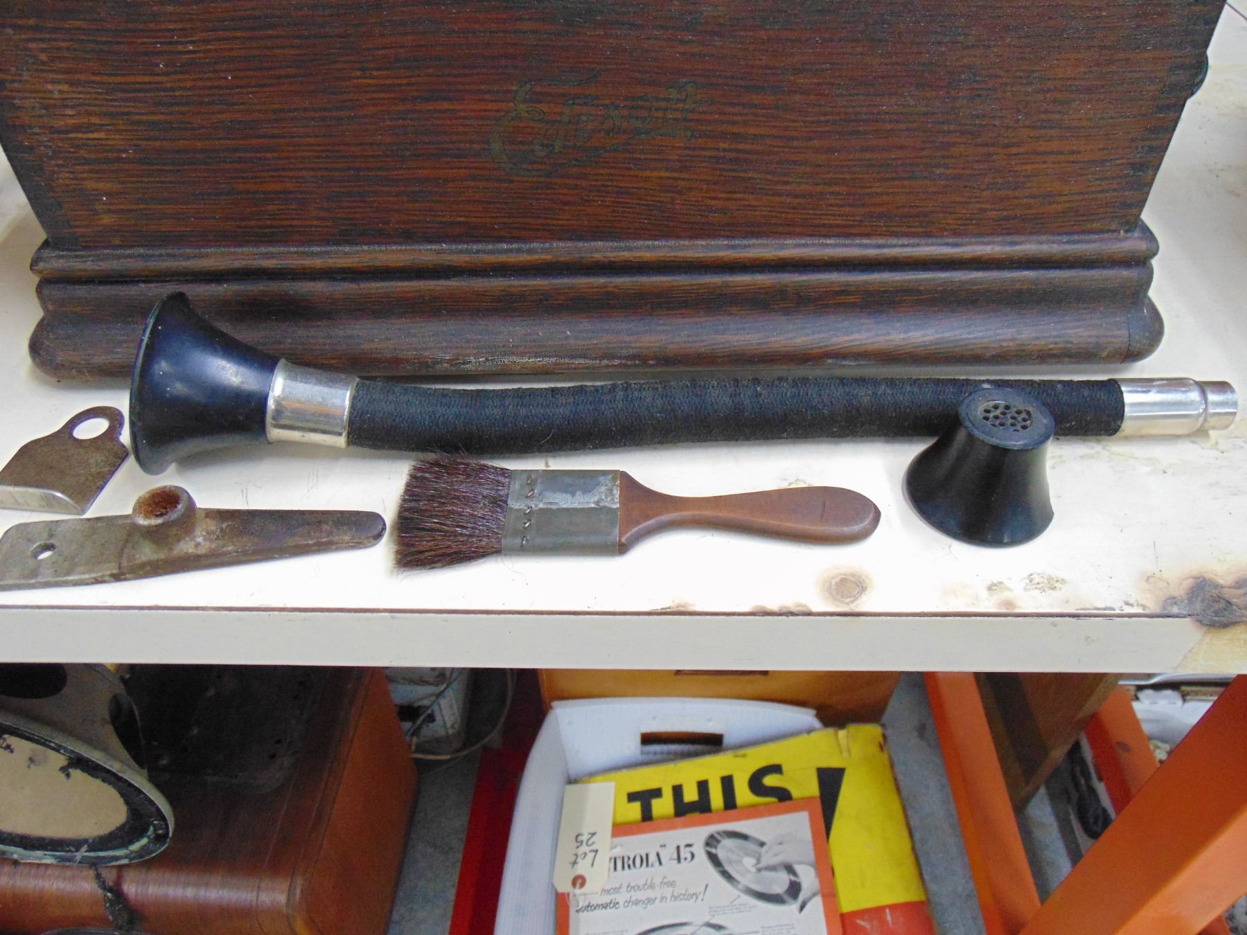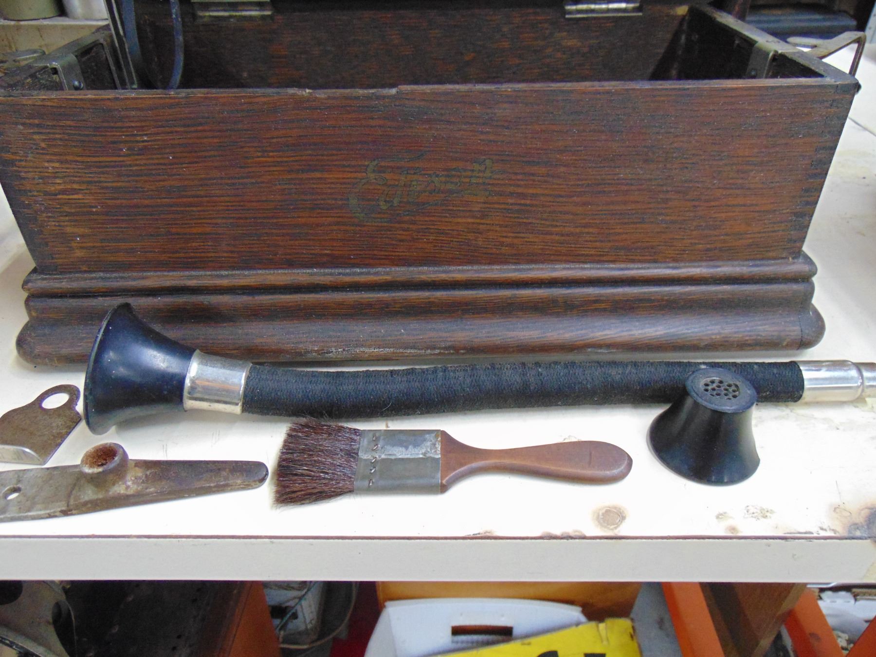 Edison Combination cylinder player; model D; w/type C reproducer; motor is missing; good case; includes flexible microphone for recording records; additional parts included
