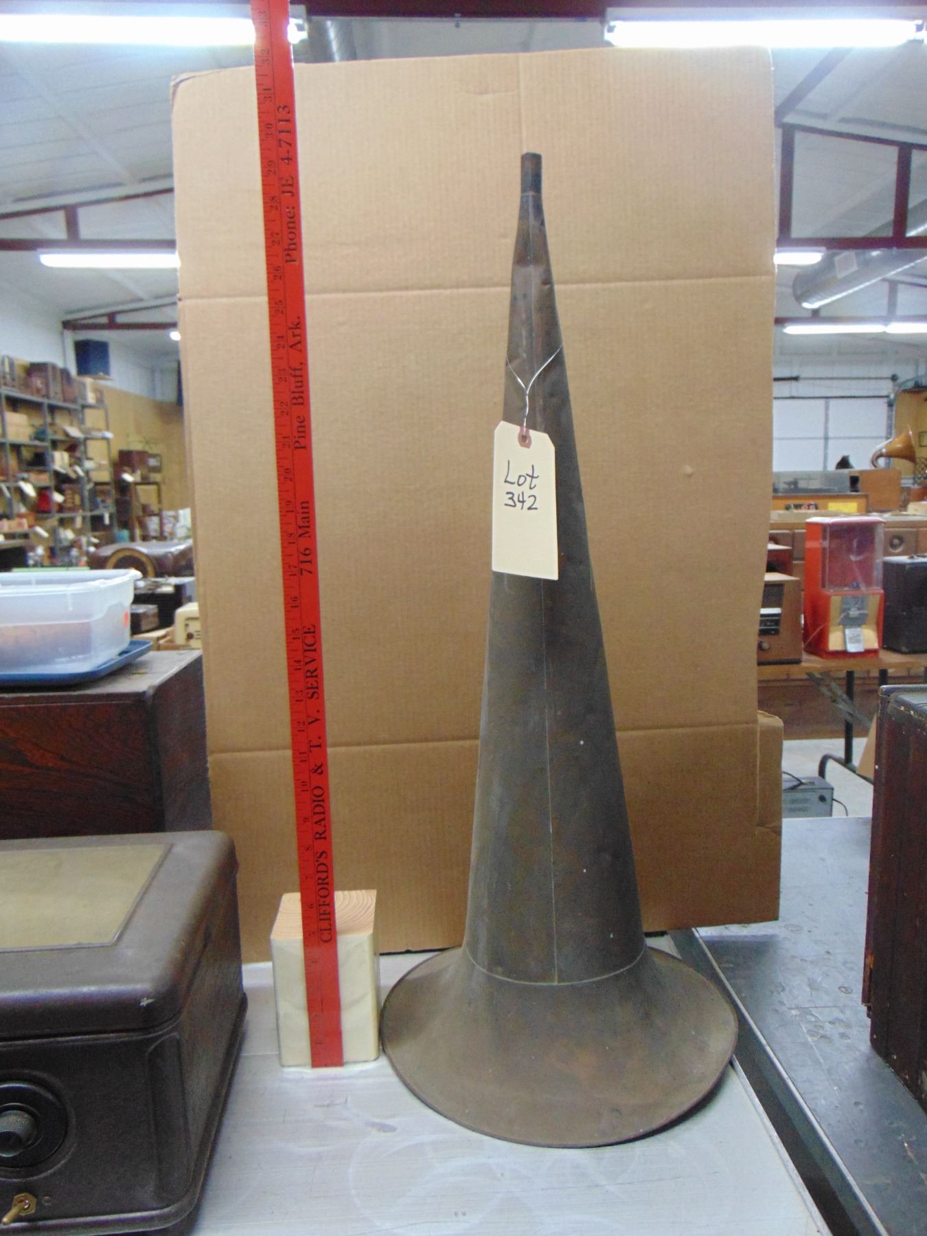Brass witches hat horn; approx. 30" tall