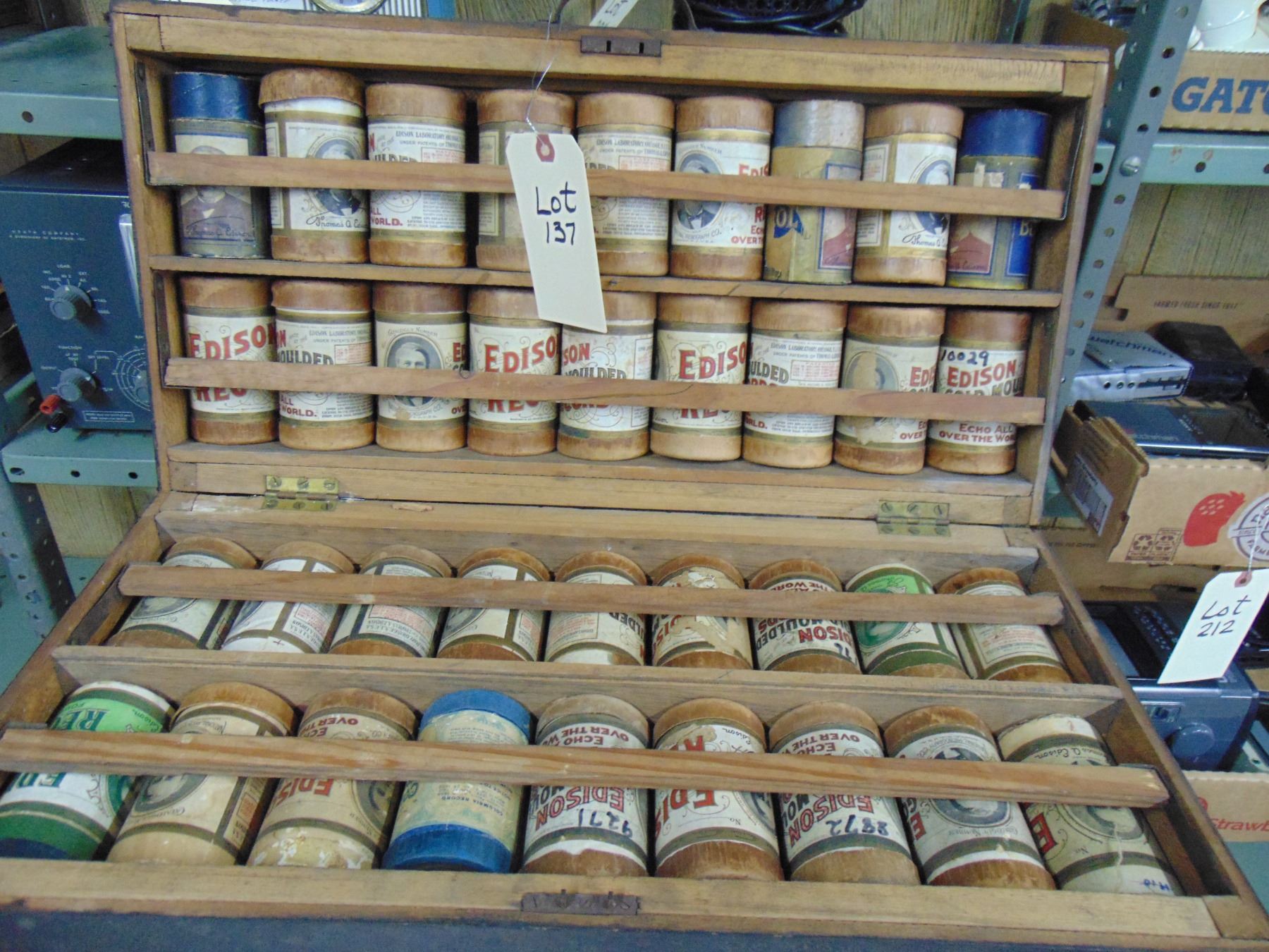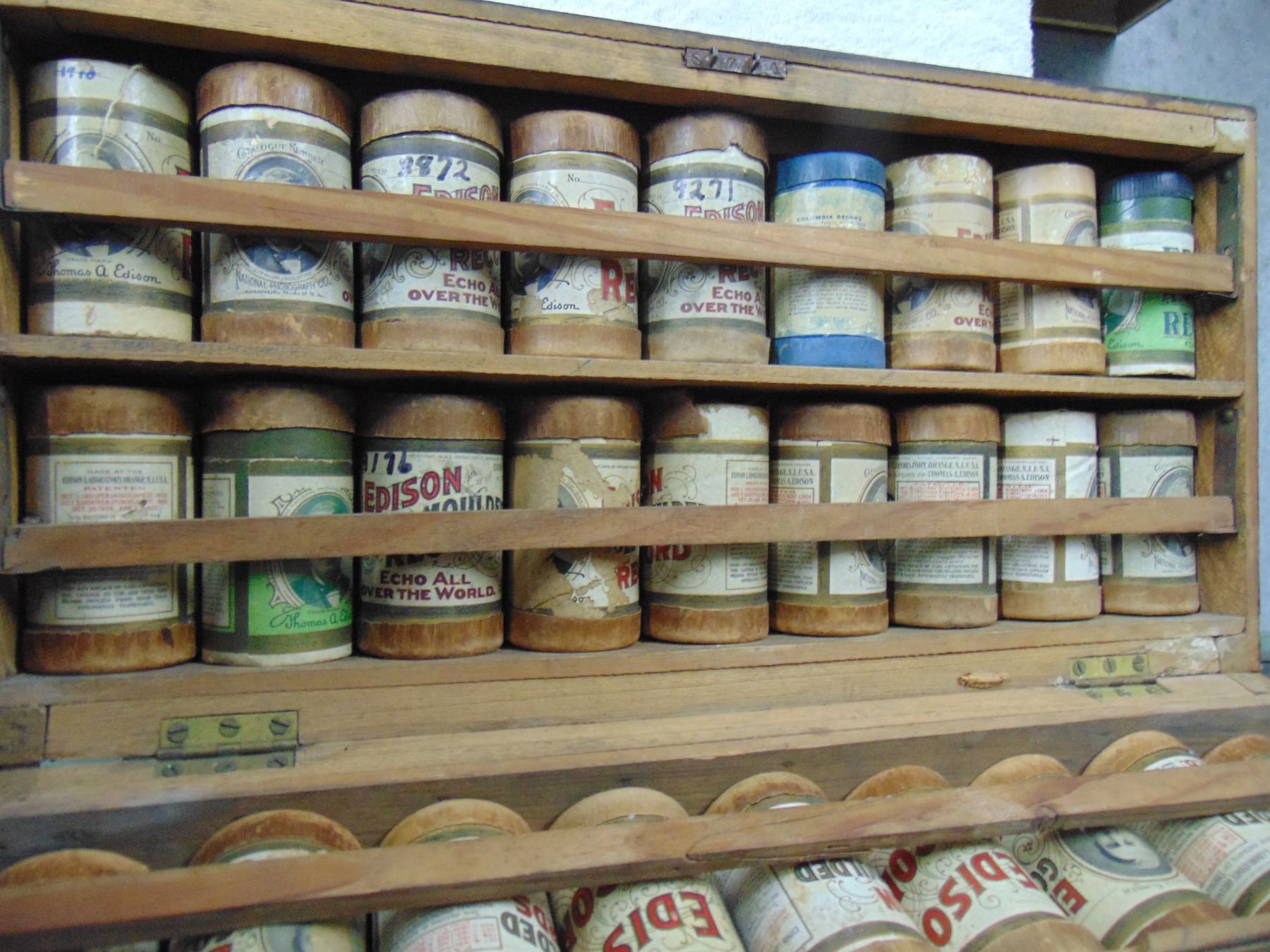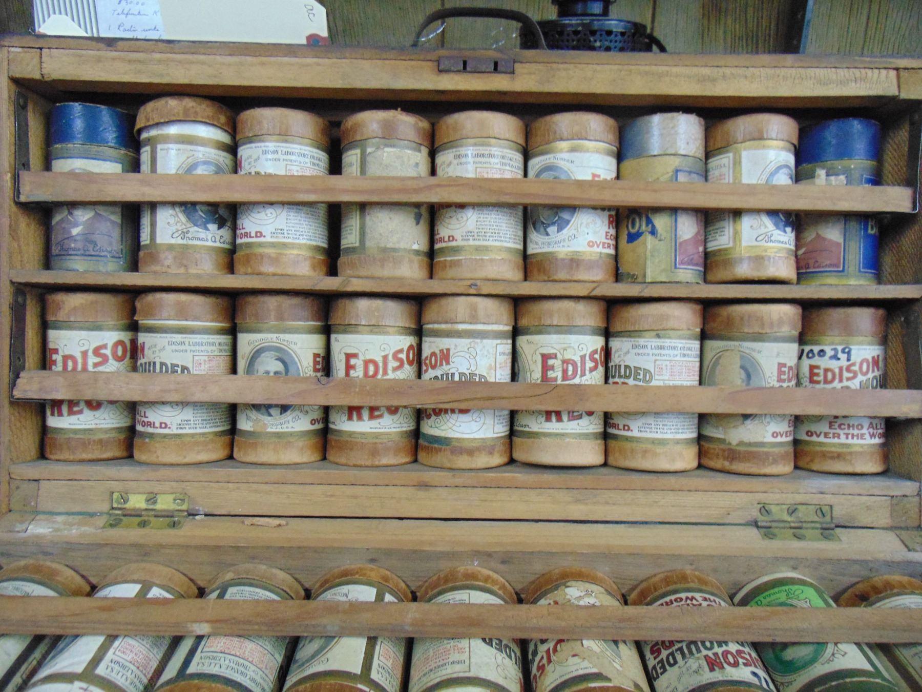 Salesman carrying case of cylinder records; early 1900's; includes 36 cylinder records with boxes