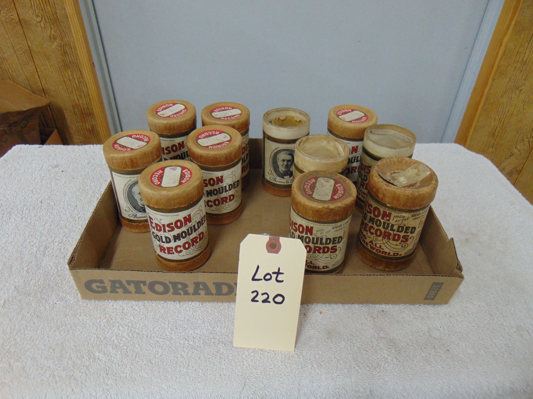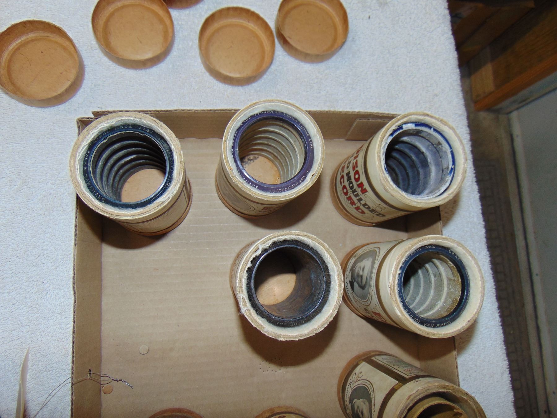 Flat of cylinder record boxes; 5 with records, 6 empty boxes; all boxes good condition