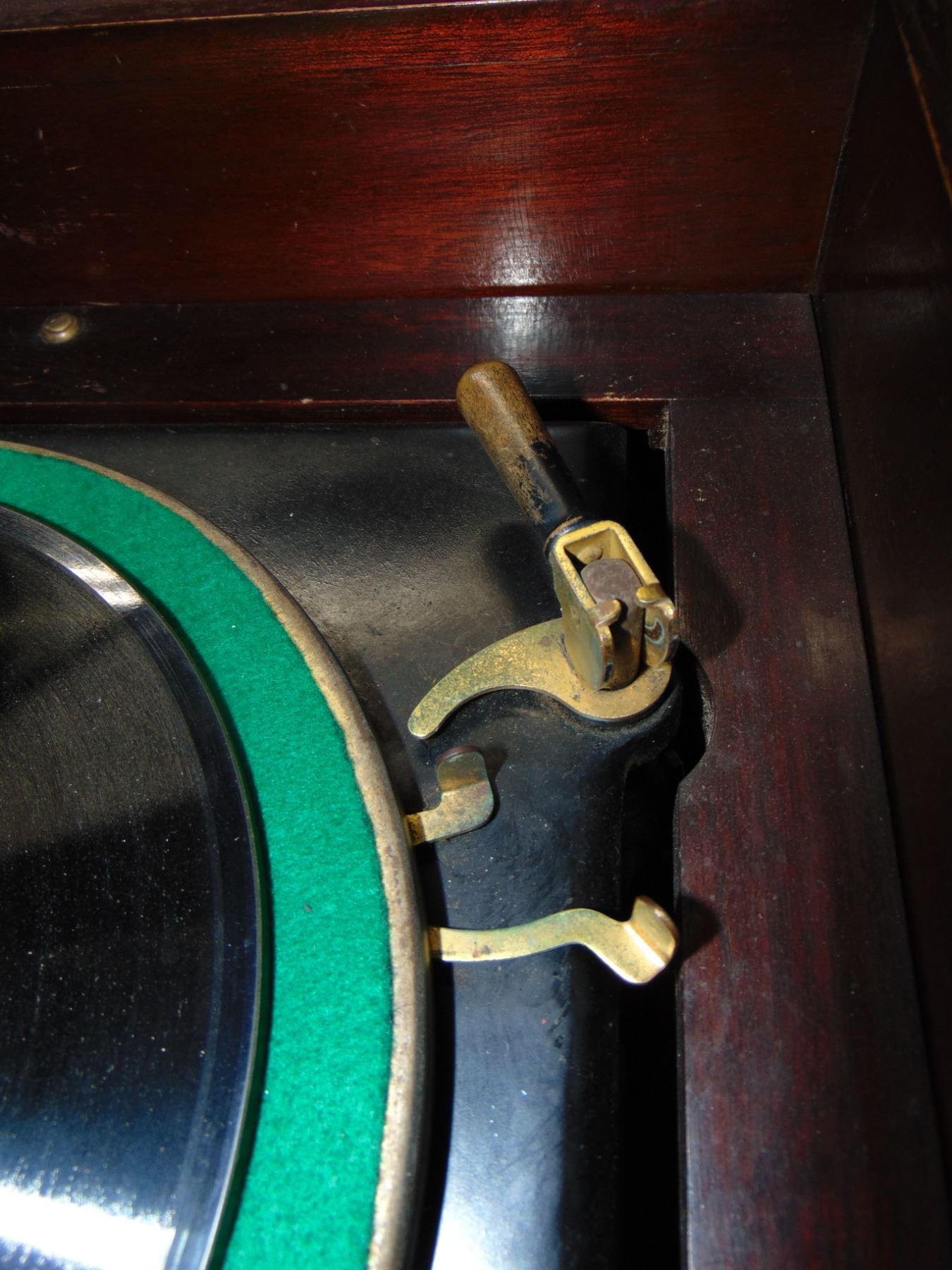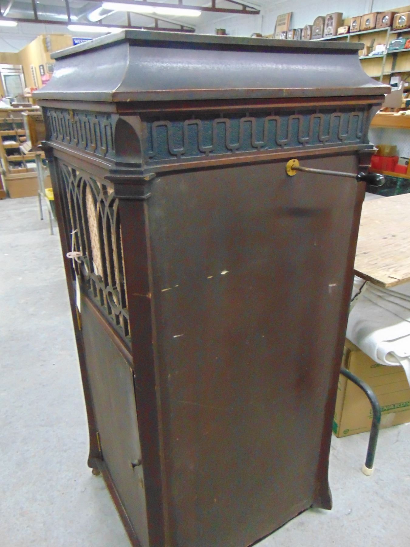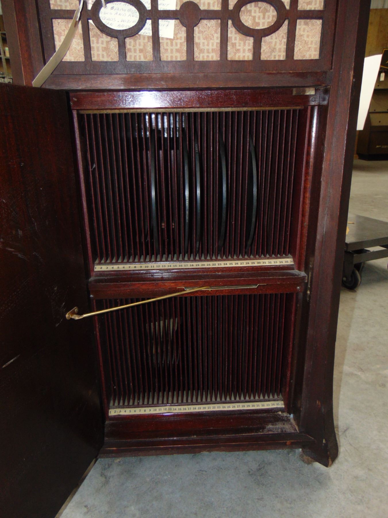 Edison Diamond Disc phonograph; mahogony cabinet; works well; includes Edison oil can and records
