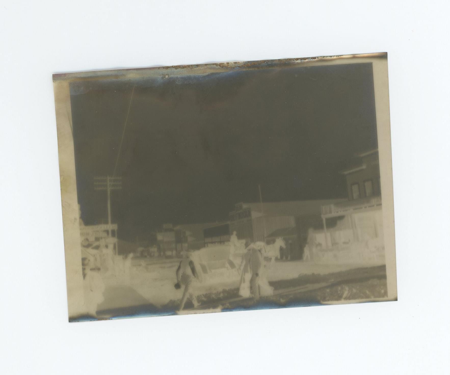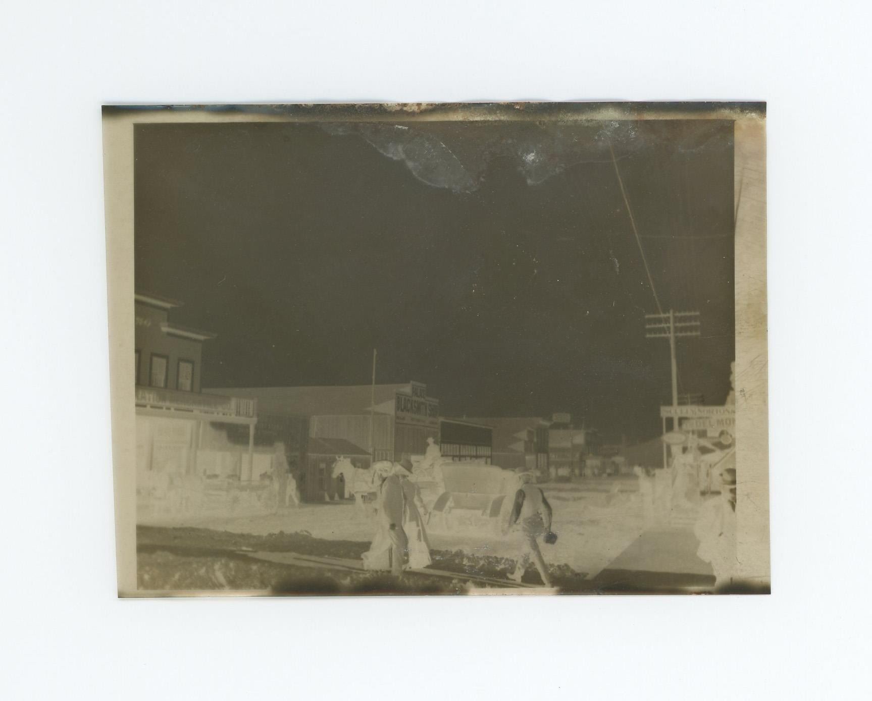 Mining Shop on left, named Blacksmith in center. 4 3/8" by 3 1/4".