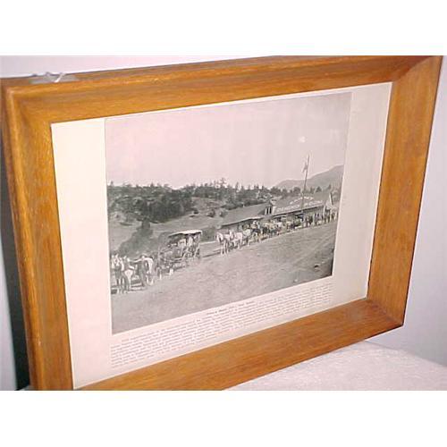 Photo print, Pike's Peak (Col.) toll road & Pike's Peak R.R. system. It was the onlly save way to ascend the peak in summer. Photo taken from TransAtlantic Series; Jan. 27th, 1894 by James Clark,IV esey, Publisher, N.Y., mounted in an oak shadow box frame; 12.5 X 16.5 ; excellent condition.