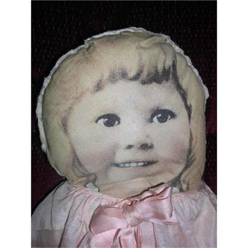 </font></strong>I don't know if this doll is old or not. Please be the judge. This doll is 25" and is a photograph doll. Her face is of a cute little blonde doll. She has blue eyes and an open mouth with teeth. The doll is made to look like the earlier cloth dolls with printed underwear. She is wearing on top of her body a great old silk dress. She is put together as a pillow. It appears she was probably from a printed cut piece of fabric. I really don't know anything about this doll so hope you do. She is from a smoke free environment. Buyer to pay $12 for shipping, insurance, and handling. Thanks. for viewing.</font>
