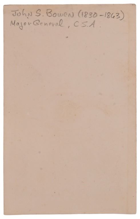 John Stevens Bowen (October 30, 1830 – July 13, 1863) was a career United States Army officer who later became a general in the Confederate Army and a commander in the Western Theater of the American Civil War. He fought at the battles of Shiloh, Corinth, and the Vicksburg Campaign. 2.5" x 4".