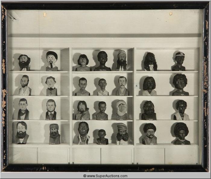 Photograph of Head Statues on the wall of Max Factor's Make Up and Consultation Room Circa 1929 from the Max Factor Collection {10" L x 9" H}