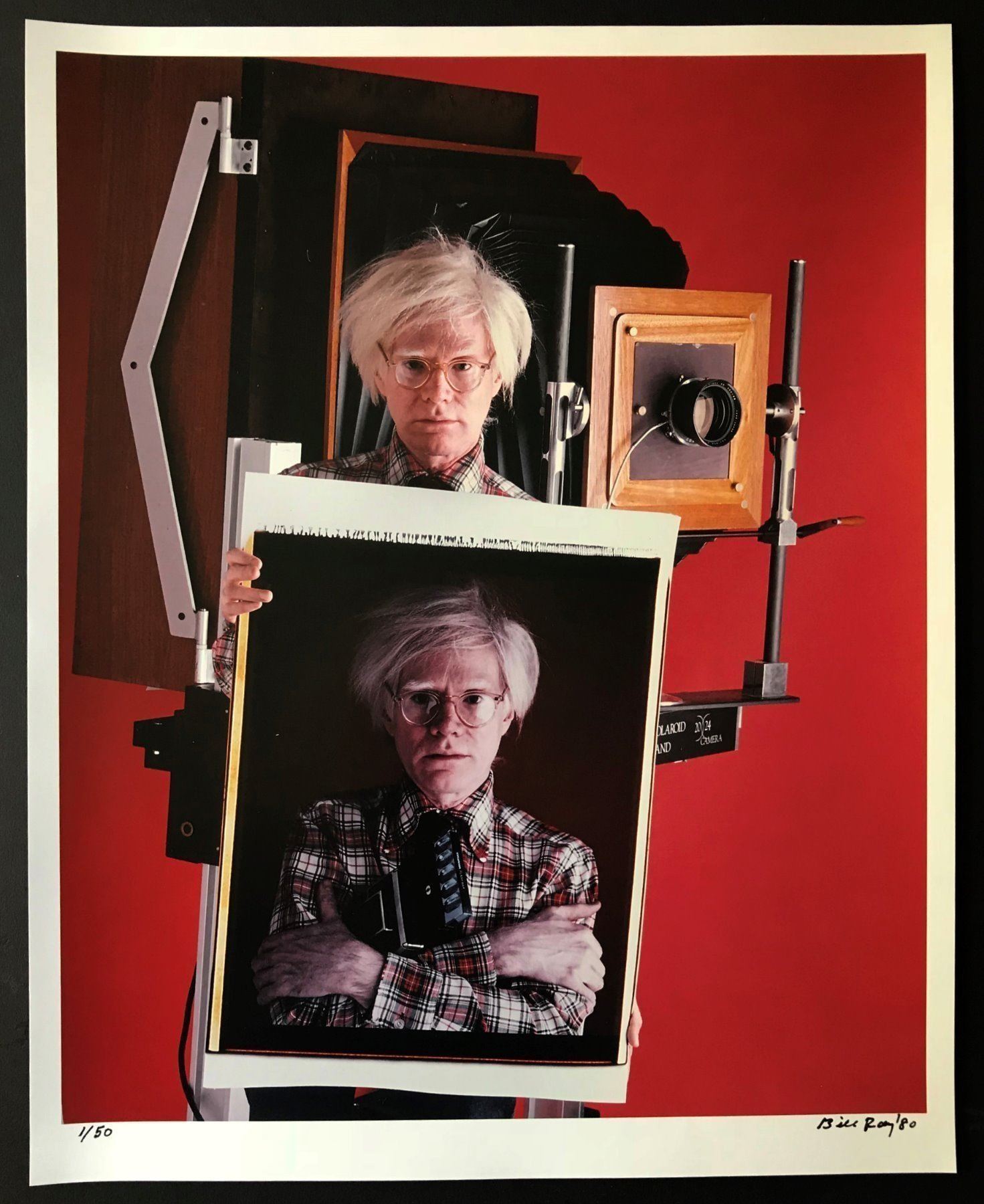 Andy Warhol in 1980 double portrait C print taken by Bill Ray for New York magazine. Signed by Bill Ray. Later print. 14x11 inches.