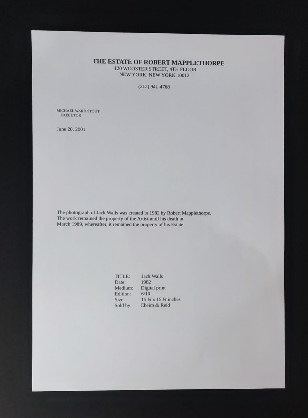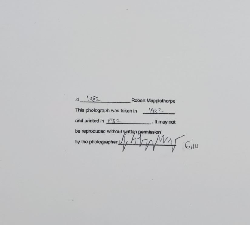 Signed and dated by Robert Mapplethorpe on verso and editioned '6/10' in ink.