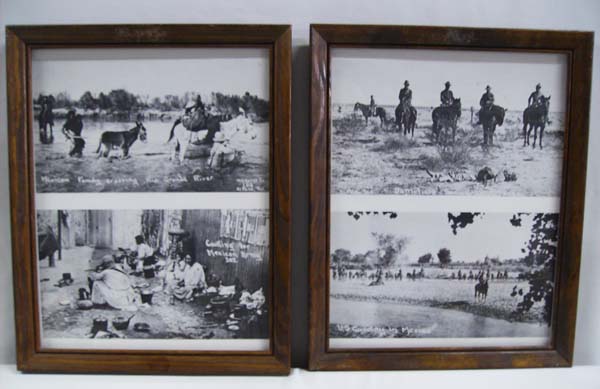 2 photographic prints of old Mexico scenes. 2 framed with 2 scenes on each 11''wx14''h paper. All pictures will be sent without frame or glass when possible. Buyers Pay Actual Shipping and Handling Charges(see terms and conditions for more information).