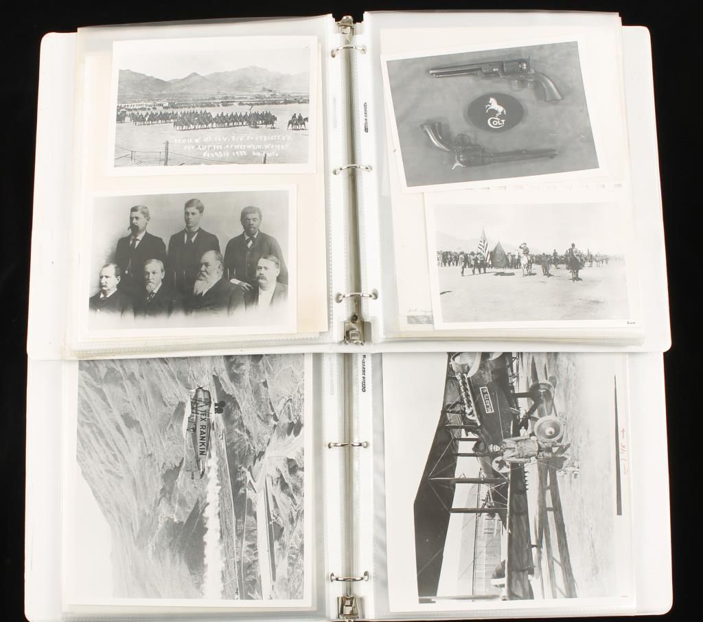 Military related. (2) binders of cavalry, foot soldier, and plane and blimp pictures. Old, some signed with descriptions on back. Also Buffalo Bill Cody pictures.