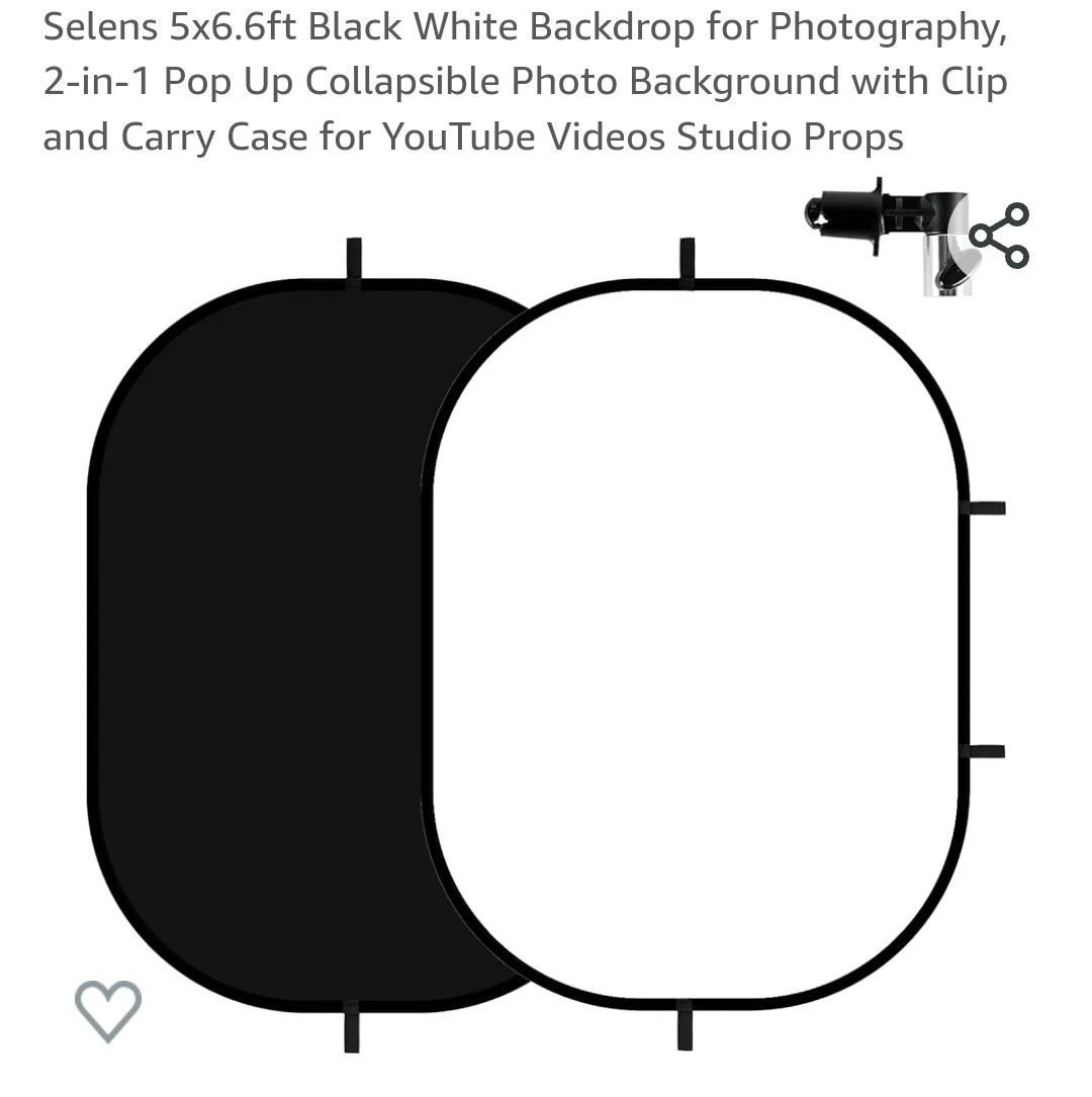 5x6.6ft black and white collapsible backdrop for photo and video, includes carry case, new.