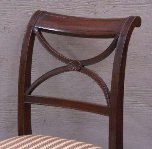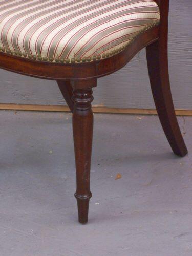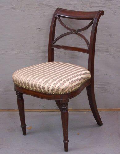 Phyfe or Hagen mahogany side chair. 32 and three quarter inches high, 19 and one half inches wide, 18 and one quarter to top of seat and 20 inches deep.