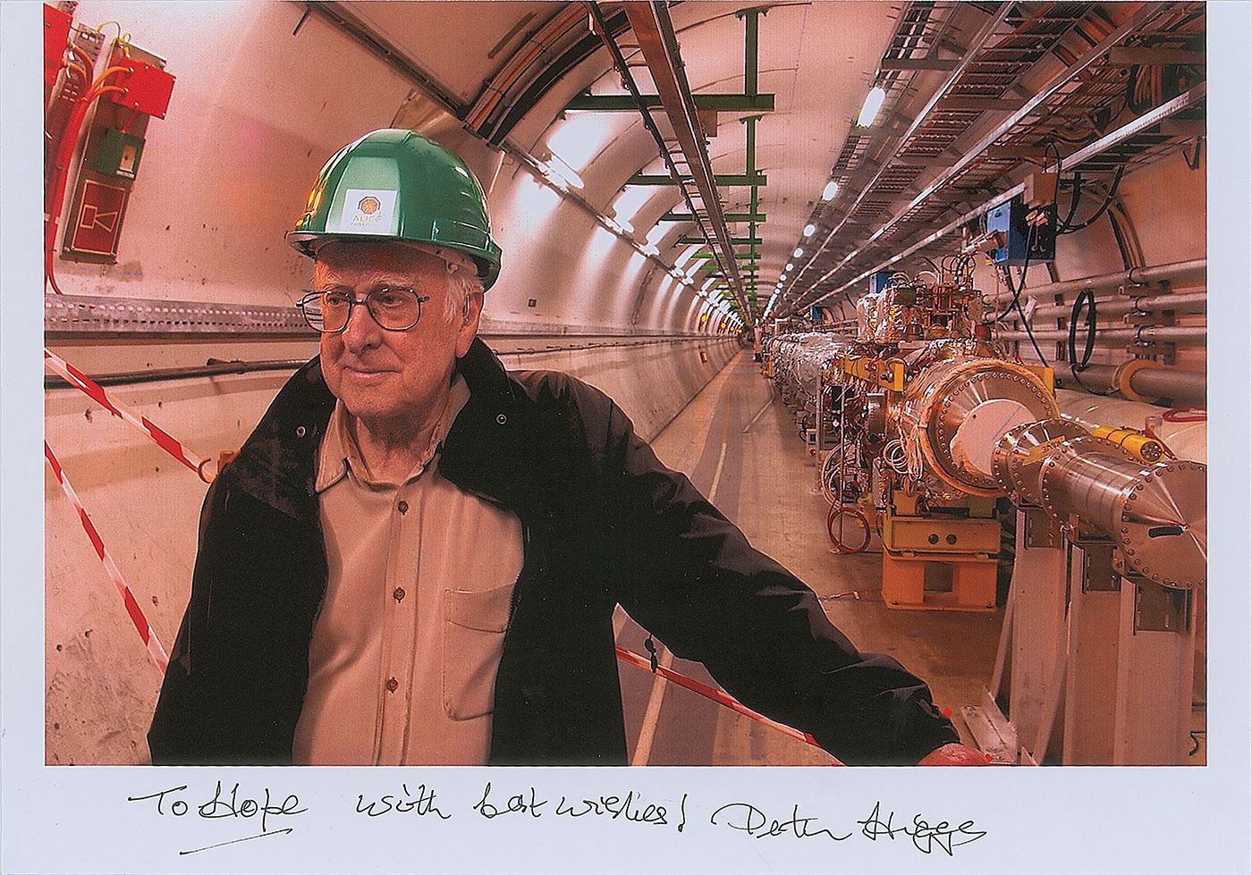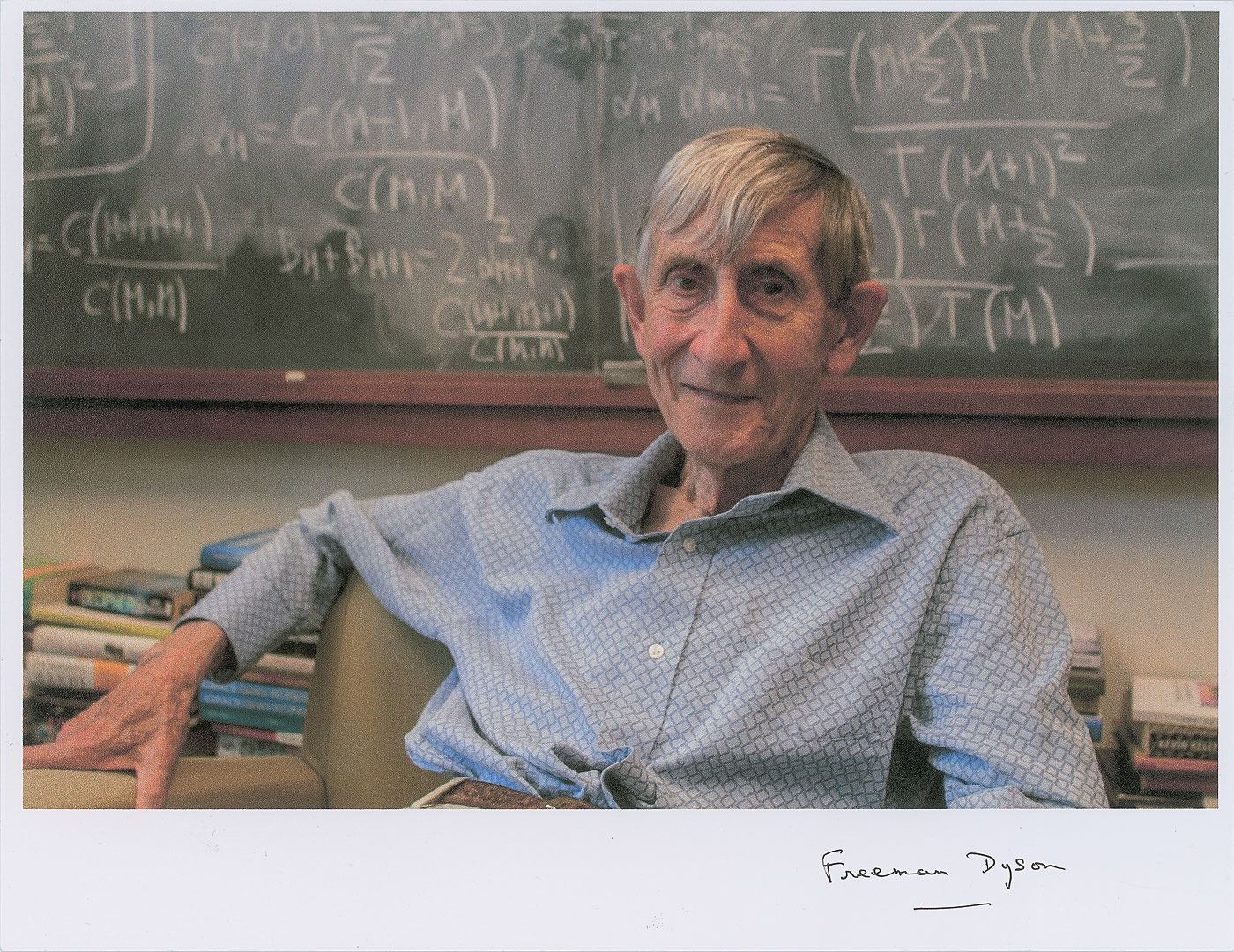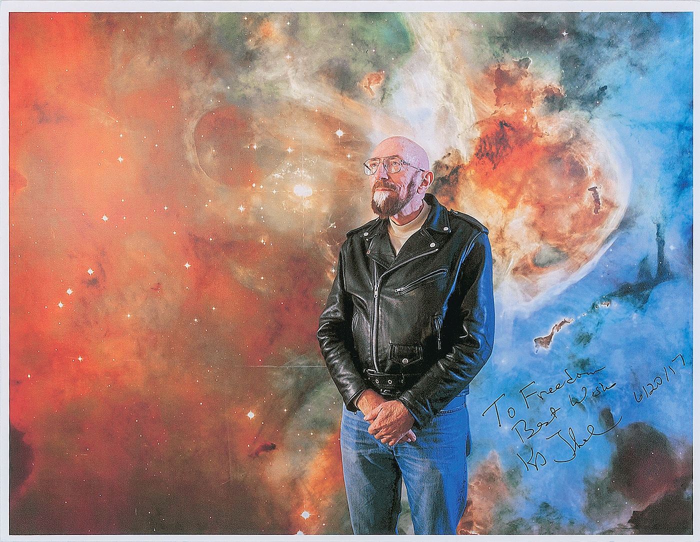 Group lot of seven color photos, semi-glossy and laserprint, ranging in size from 5 x 7 to 11.75 x 8.25, each signed in ink or felt tip by the pictured physicist, including: Freeman Dyson, Kip Thorne (ins), Peter Higgs (ins), Roger Penrose, and Neil deGrasse Tyson (3). In overall very fine condition.
