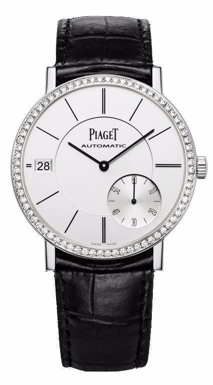 Model: G0A39138 - CASE = [Material:18kt White Gold], [Case Diameter:40], [Case Thickness:6.36mm], [Bezel:Diamonds], [Water Resistant:30 Meters - 100 Feet], [Crystal:Scratch Resistant Sapphire],; DIAL = [Color:Silver with Black Hands and Index Hour Markers],; MOVEMENT = [Type:Automatic],; BAND = [Clasp:Tang], [Type:Black Alligator Leather], (Usually ships in 1 to 2 weeks.)