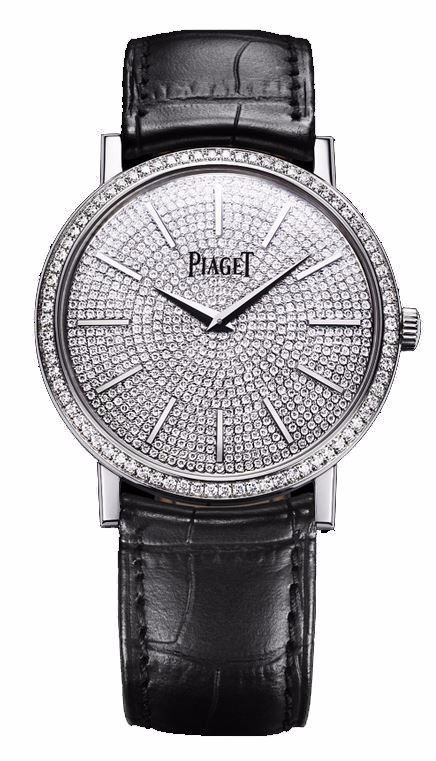 Model: G0A36129 - CASE = [Material:18kt White Gold], [Case Diameter:38], [Case Thickness:6.4mm], [Bezel:Diamonds], [Water Resistant:30 Meters - 100 Feet], [Crystal:Scratch Resistant Sapphire],; DIAL = [Color:Diamonds],; MOVEMENT = [Type:Manual Wind],; BAND = [Clasp:Tang], [Type:Black Alligator Leather], (Usually ships in 1 to 2 weeks.)