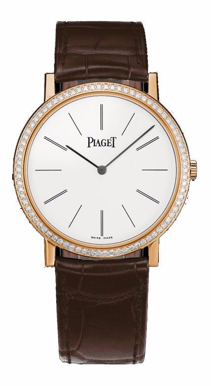 Model: G0A36125 - CASE = [Material:18kt Rose Gold], [Case Diameter:38], [Case Thickness:6.4mm], [Bezel:Diamonds], [Water Resistant:30 Meters - 100 Feet], [Crystal:Scratch Resistant Sapphire],; DIAL = [Color:White with Black Hands and Index Hour Markers],; MOVEMENT = [Type:Manual Wind],; BAND = [Clasp:Tang], [Type:Brown Alligator Leather], (Usually ships in 1 to 2 weeks.)