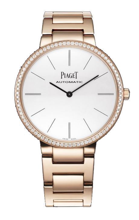 Model: G0A40114 - CASE = [Material:18kt Rose Gold], [Case Diameter:38], [Case Thickness:7.9mm], [Bezel:Diamonds], [Water Resistant:30 Meters - 100 Feet], [Crystal:Scratch Resistant Sapphire], DIAL = [Color:White with Black Hands and Index Hour Markers], MOVEMENT = [Type:Automatic], BAND = [Clasp:Folding], [Type:18kt Rose Gold], (Usually ships in 1 to 2 weeks.)