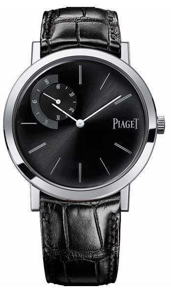 Model: GOA34114 - CASE = [Material:18kt White Gold], [Case Diameter:40], [Case Thickness:5.2mm], [Bezel:Fixed], [Case Back:Skeleton], [Water Resistant:30 Meters - 100 Feet], [Crystal:Scratch Resistant Sapphire], DIAL = [Color:Black with Silver Hands and Indexes], MOVEMENT = [Type:Manual Winding], [Crown:Push In], BAND = [Clasp:Tang], [Type:Black Leather], (Usually ships in 1 to 2 business days.)