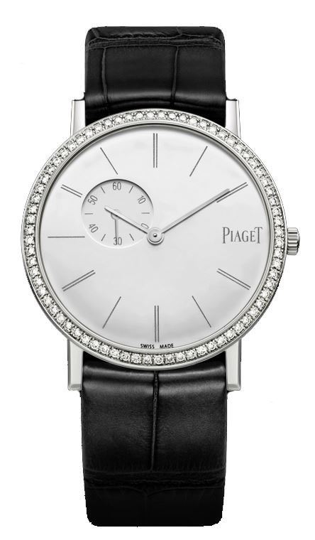 Model: G0A39106 - CASE = [Material:18kt White Gold], [Case Diameter:34], [Case Thickness:6.3mm], [Bezel:Diamonds], [Water Resistant:30 Meters - 100 Feet], [Crystal:Scratch Resistant Sapphire], DIAL = [Color:White with Silver Hands and Index Hour Markers], MOVEMENT = [Type:Manual Wind], BAND = [Clasp:Tang], [Type:Black Alligator Leather], (Usually ships in 1 to 2 weeks.)