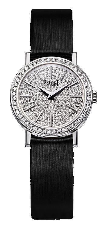Model: G0A37033 - CASE = [Material:18kt White Gold], [Case Diameter:24], [Case Thickness:5.7mm], [Bezel:Diamonds], [Water Resistant:30 Meters - 100 Feet], [Crystal:Scratch Resistant Sapphire], DIAL = [Color:Diamond], MOVEMENT = [Type:Quartz], BAND = [Clasp:Tang], [Type:Black Satin], (Usually ships in 1 to 2 weeks.)