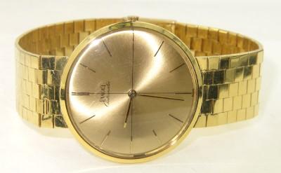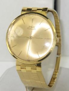 Piaget Automatic 18K Yellow Gold Watch . The total watch's weight is 67.2 grams. The measurements of watch head is 33 x 33 mm and 4 mm thick. The length of watch: 8". swiss made. Water Resistant. Chain is 16 mm wide