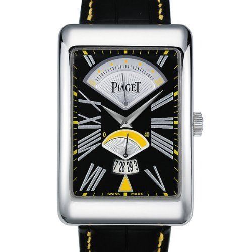 Model: GOA31027 - CASE = [Material:18k White Gold], [Case Diameter:46], [Bezel:Fixed], [Crystal:Scratch Resistant Sapphire],; DIAL = [Color:Black Roman Numeral with Retrograde Seconds at 12, Power Reserve Indicator in Center and Date at 6],; MOVEMENT = [Type:Automatic Self Winding],; BAND = [Clasp:Tang], [Type:Black Leather with Yellow Stitching], (Usually ships in 2 to 4 weeks.)