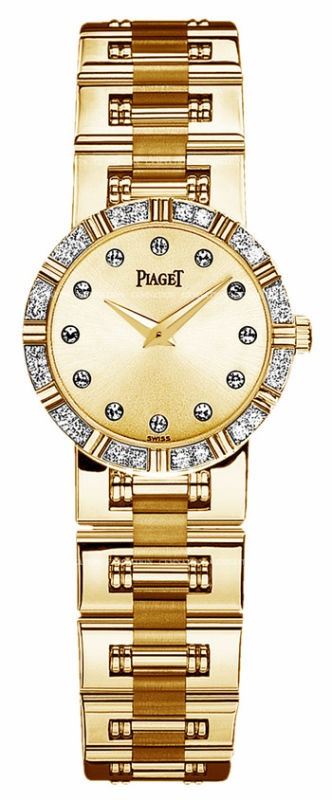 Model: GOA02107 - CASE = [Material:18kt Yellow Gold], [Case Diameter:23], [Bezel:18kt Yellow Gold set with Diamonds], [Case Back:Solid], [Water Resistant:30 Meters /100 feet], [Crystal:Sapphire Anti-reflective],; DIAL = [Color:Champagne with Diamond Hour Markers],; MOVEMENT = [Type:Battery Powered Quartz], [Crown:White Gold],; BAND = [Clasp:Jewlery Clasp], [Type:18kt Yellow Gold], (Usually ships in 2 to 4 weeks.)