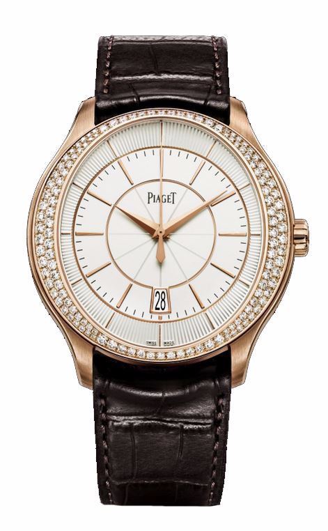 Model: G0A39114 - CASE = [Material:18kt Rose Gold], [Case Diameter:43], [Bezel:Diamonds], [Water Resistant:30 Meters - 100 Feet], [Crystal:Scratch Resistant Sapphire],; DIAL = [Color:Silver with Rose Gold Hands and Index Hour Markers],; MOVEMENT = [Type:Automatic],; BAND = [Clasp:Tang], [Type:Brown Alligator Leather], (Usually ships in 1 to 2 business days.)