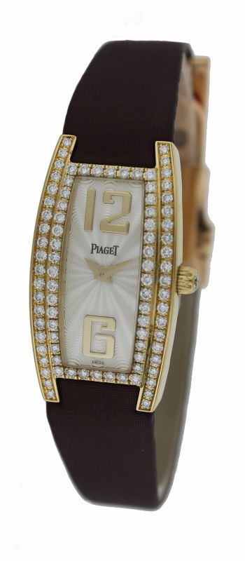 Model: GOA28004 - CASE = [Material:18k Yellow Gold], [Case Diameter:26], [Bezel:Set with 86 Diamonds], [Case Back:Solid], [Water Resistant:30 Meters /100 feet], [Crystal:Scratch Resistant Sapphire],; DIAL = [Color:Silver],; MOVEMENT = [Type:Qaurtz],; BAND = [Clasp:Deployment], [Type:Black Fabric], (Usually ships in 2 to 4 weeks.)
