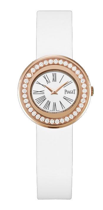 Model: G0A36188 - CASE = [Material:18kt Rose Gold], [Case Diameter:29], [Case Thickness:6.2mm], [Bezel:Diamonds], [Water Resistant:30 Meters - 100 Feet], [Crystal:Scratch Resistant Sapphire], DIAL = [Color:White with Rose Gold Hands and Black Numerals], MOVEMENT = [Type:Quartz], BAND = [Clasp:Tang], [Type:White Satin], (Usually ships in 1 to 2 business days.)