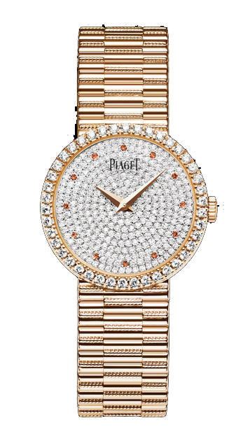 Model: G0A37044 - CASE = [Material:18kt Rose Gold], [Case Diameter:26], [Case Thickness:5.2mm], [Bezel:Diamonds], [Water Resistant:30 Meters - 100 Feet], [Crystal:Scratch Resistant Sapphire],; DIAL = [Color:Diamond],; MOVEMENT = [Type:Manual Wind],; BAND = [Clasp:Integrated], [Type:18kt Rose Gold], (Usually ships in 1 to 2 weeks.)