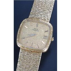 Piaget, a gentleman's 18ct gold bracelet watch, the gold bark effect dial with gold baton numeral...