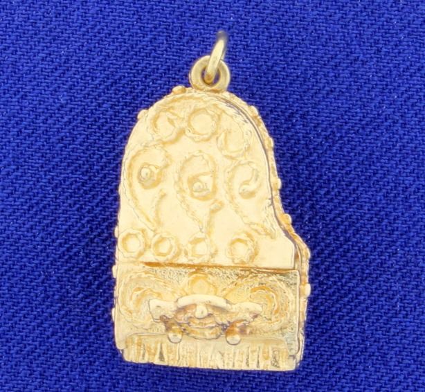 The charm is 14K yellow gold and is 1 inch long, and has beautiful details! 6.7g