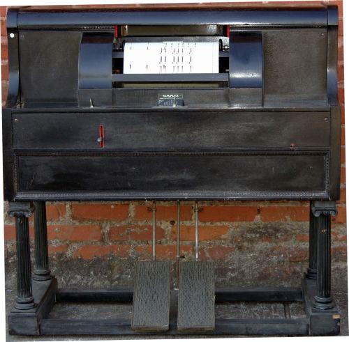 Piano Player Push Up -Wooden cabinet with wooden fingers. When aligned with keyboard of a piano and activated, the keys play in the same manner as if a human were at the keyboard.