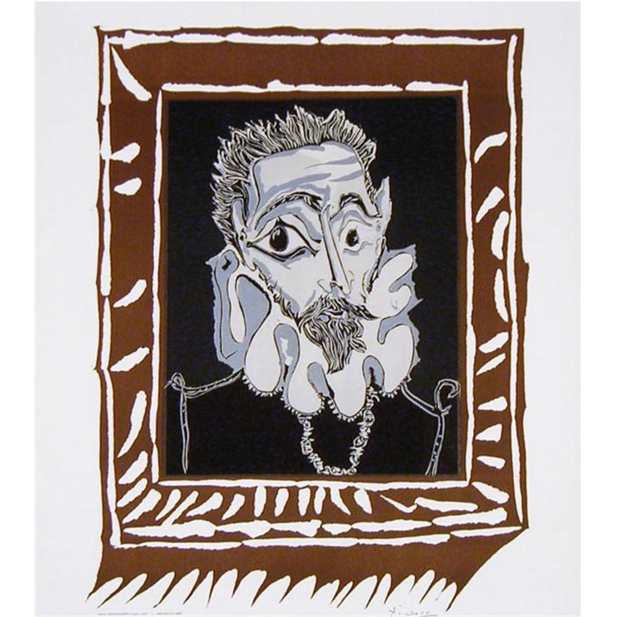 This is a limited edition art print by the most famous artist of the 20th century, Pablo Picasso. This interesting print, titled "Man with Ruff", portrays a man with an unusually distorted face. The lithograph was produced by Picasso in 1963. Title: "Man with Ruff" Year: 1963 Medium: Lithograph in color printed on Arches paper Image size: 15.75 inches x 21.75 inches Sheet size: 21.75 inches x 26.75 inches Signed by the artist in the plate, lower right Concition: Excellent This Picasso print is a fantastic portrait, inspired by Surrealism as only Picasso could do. *