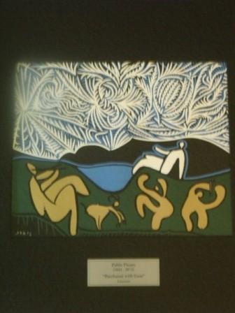 Picasso " Bacchanal with Goat" Linocut This is an original Linocut printed in Germany by Fernand Mourlot. It is one of only 256 copies. Printed in 1963 under the supervision of Picasso himself. All plates were destroyed after printing. Only a very few of these smaller images were ever signed. The larger images were signed and numbered and both the smaller and the larger images were documented in various catalogs describing the artist's work.