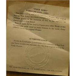 After Picasso. Unsigned Etching. titled "Pour Roby" Certificate of authenticity on verso.