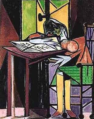 Pablo Picasso "Girl Reading At Desk" - Numbered Limited Edition Giclee' On Heavy Archival Wove Paper - Estate Signed In Pencil "Collection Domaine Picasso" - Professionally Framed And Matted - Mint - Comes With COA - 26" X 20" Appx Page