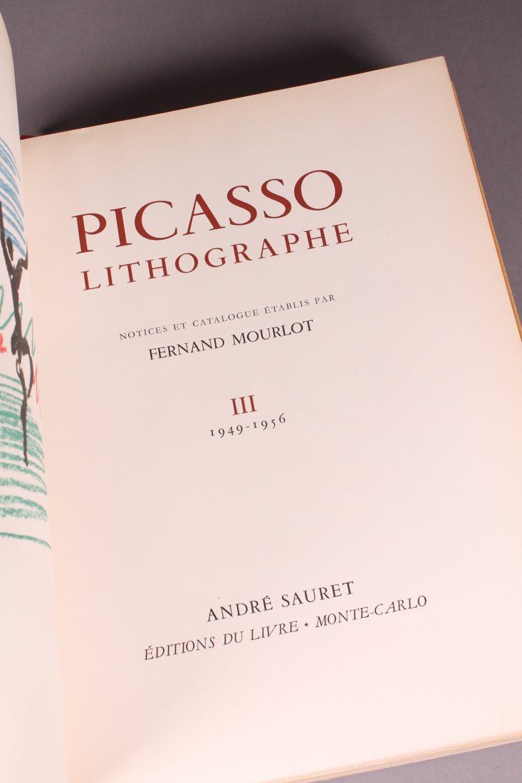 [Picasso, Pablo]. PICASSO LITHOGRAPHE. 3 Vols (of 4): Vols II-IV, covering 1947 ? 1963. Monte Carlo: Andre Sauret, (1950, 1956, 1964). 1st trade edition. 5 lithographs by Picasso done especially for this work (frontises and front/rear wraps of Vols III-IV). Bloch 795-796, 1108, 1155.